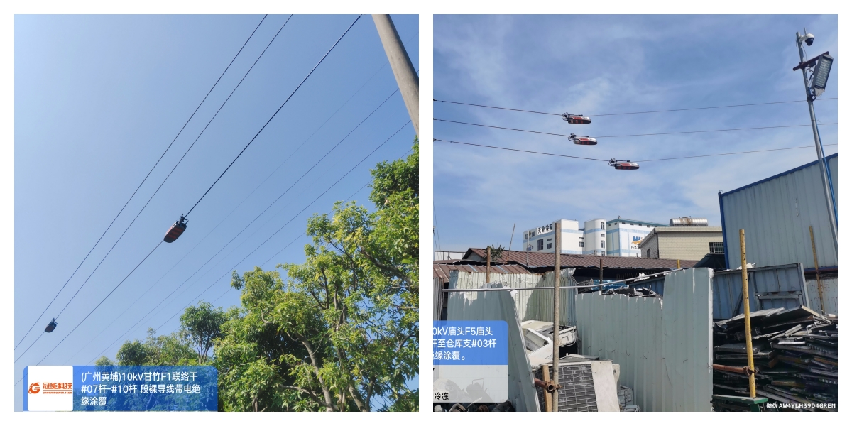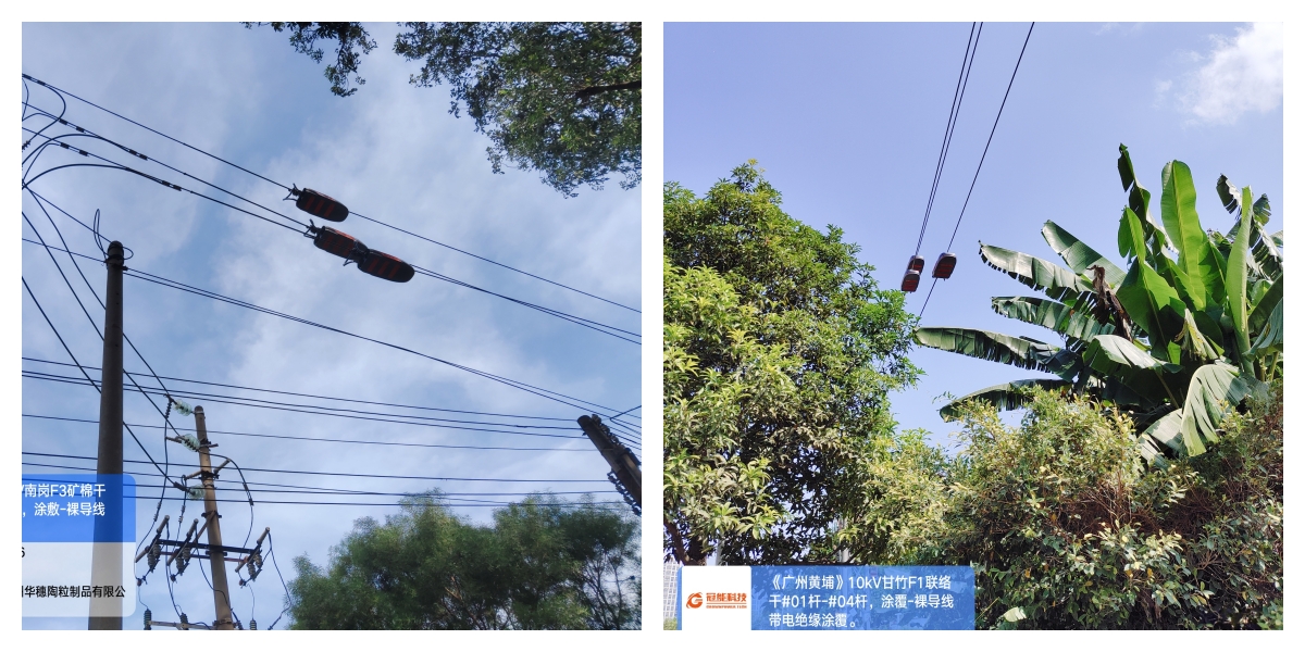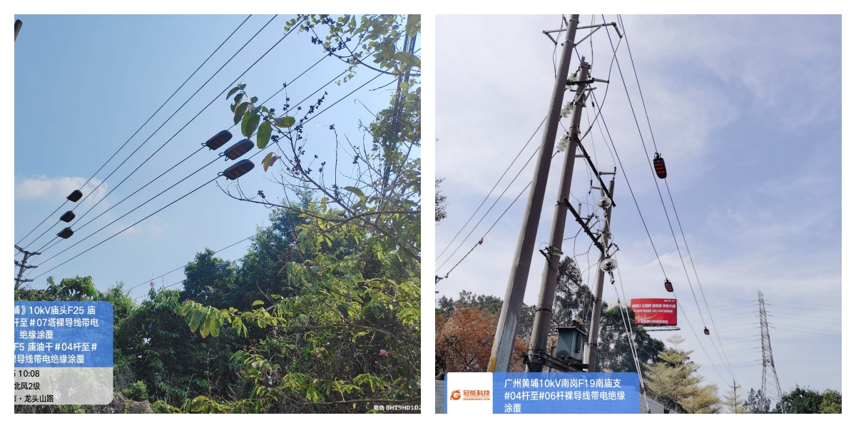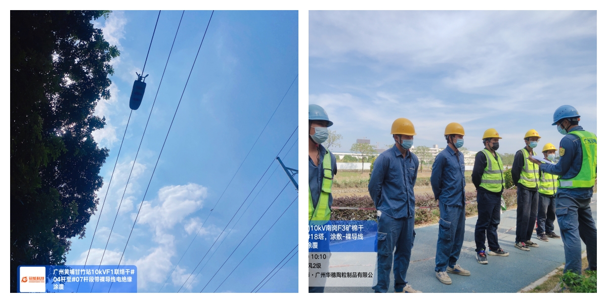當天,在冠能科技技術人員的配合下黃埔供電局成功對10千伏甘竹F1聯絡干#01桿-#10桿段、廟頭F5廟頭F5華坑支#13桿至倉庫支#03桿、廟頭F25 廟油干#03桿至#07塔、南崗F3礦棉干#15塔至#18塔、南崗F19南廟支#04桿至#06桿、架空裸導線進行帶電絕緣涂覆,消除線路安全隱患,保障居民用電安全。