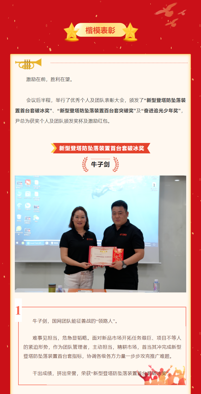 Monthly Special Topic | Guanneng Marketing Center held a promotion layout and commendation conference for the new tower climbing anti fall device stage